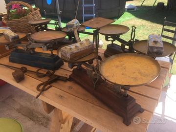 Da usare come arredo giardino vecchie bilance francesi in ghisa e altre da farmacia in legno , fare una offerta grazie le bilance a due piatti in ghisa sono state vendute