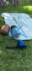 Articoli per campeggio. Sacco a pelo. Materassino matrimoniale. Piccolo compressore per gonfiaggio. Borsone + varie. Consegna solo a mano. provincia di Bologna possibilmente in stock.