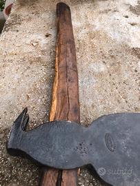 Antica ascia da carpenteria a martello con alette tira chiodi completa di manico in legno lavorato a mano