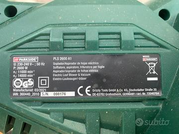 Vendesi soffiatore aspirafoglie Parkside usato pochissimo completo di imballo istruzioni e tutti gli accessori perfetti, è il modello da 2600W. Sono a corredo la scatola accessori e libretto d’istruzioni. Vendo € 45,00