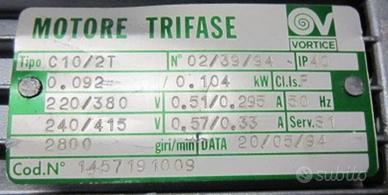 E' un motore 3 fasi, testato per sicurezza perche' dorme in box da qualche anno.