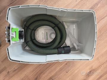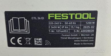 L'unità mobile d'aspirazione577908Festool CTL 36 EIè un aspirapolvere ad utilizzo professionale, capiente ma maneggevole, particolarmente indicato per l'utilizzo in cantieri e laboratori. Questo aspiratore offre un ampio serbatoio da 36 litri indicato per la raccolta di residui solidi o liquidi, robusto e capiente, perfetto per garantire pulizia approfondita degli spazi di lavoro senza presentare un ingombro eccessivo. Realizzato con innovativo pannello dicomando touch a sfioramento, permette al lavoratore di impostare e gestire le varie funzionalità del macchinario in maniera semplice ed intuitiva. Inoltre la presa per elettroutensili integrata nell'aspiratore permette di collegare direttamente gli strumenti ed avviare in maniera sincronizzata l'utensile e l'aspiratore per lavorazioni più efficienti e minor sforzo. L'aspirapolvere industriale Festool577908 presenta sistema diregolazione della velocitàimpostabile su 5 diversi livelli, grazie alla turbina ad alte prestazioni la potenza è garantita per offrire la massima capacità di aspirazione possibile. Il design di questo aspiratore è progettato per garantire la massima maneggevolezza e praticità: grazie alsistema T-Locè possibile collegare valigette Systainer sulla parte superiore della macchina per avere sempre a portata di mano i propri utensili, un alloggiamento consente di riporre il tubo di aspirazione in maniera ordinata mentre le larghe ruote facilitano la movimentazione negli spazi di lavoro permettendo anche il bloccaggio grazie ad un freno di stazionamento. Il filtro è omologato per l'aspirazione delle polveri inclasse Ldal design piatto permette di catturare i residui in maniera efficace lasciando libero il serbatoio e offrendo così magg