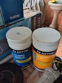 Aspiratore ricaricabile Intex Vacuum per piscine più numerosi accessori in omaggio. Di seguito dettagli: - Aspiratore ricaricabile completo di accessori (spazzola, asta telescopica, filtro...) - Secondo aspiratore (fornito direttamente da Intex in sostituzione del precedente che aveva problemi di ricarica poi risolti) - kit retino Bestway flowclear - cloro 4 azioni Gre - cloro shock Axton - incrementatore di ph Axton - riduttore di ph Axton - 4 confezioni di strips per verifica ph acqua - diffusore cloro galleggiante bestway A disposizione per chiarimenti