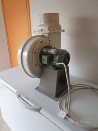 Vendo motore più corpo chiocciola di aspiratore industriale professionale alimentato a 220v, era su un banco di lavoro, dove era presente la cappa di aspirazione munita di questo sistema aspirante.