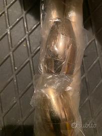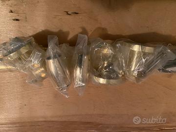 Caratteristiche: asta divisa in 2 e assemblata con 1 giunto + 3 supporti da 4 cm. da soffitto senza anelli 2 finali "ovale" , tutto in ottone lucido.