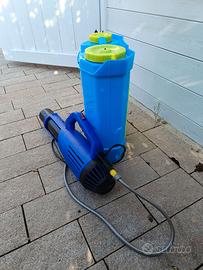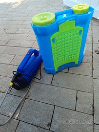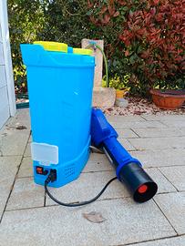 Zaino atomizzatore nebulizzatore elettrico con batteria a litio, capacità 20L, controllo dimensione spruzzo, con cinghie per imbragatura a spalla.