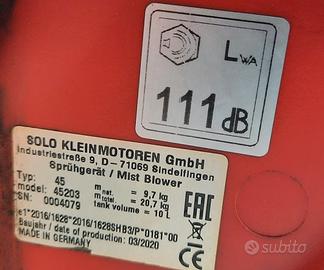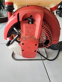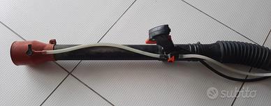 Atomizzatore a spalla Motore a 2 tempi da 66,5 cc Serbatoio liquidi da 10 L Volume d'aria massima pari a 1400 mc/h Portata di 11 m orizzontali