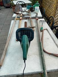 Vari attrezzi da orto giardino decespugliatore elettrico vanga zappa piccone seghetto roncola x rami sottovaso sega vendo in blocco Euro 49 .bologna zona aeroporto.