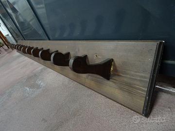 Bellissimo e importante attacapanni in legno a 15 pioli,misure 2,19 m x 19 cm.