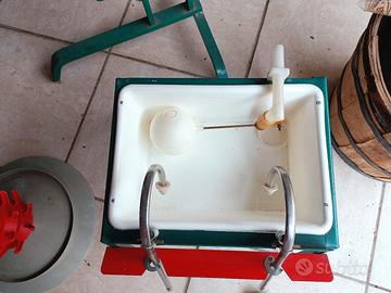 Cedo per inutilizzo attrezzatura completa per imbottigliamento composta da: vaschetta riempi bottiglie, tappatrice, scolabottiglie e canna singola. Regalo damigianetta da 34 lt e numerose bottiglie scure