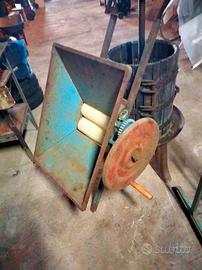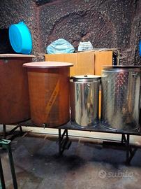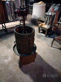 Tutto ciò che serve per vinificare e cioè: 2 botti in vetroresina (una da 500 lt + una da 300 lt), + 3 botti in acciaio ( 1 da 200 lt +1 da 110 lt + 1 da 50 lt) tutte con rubinetto, coperchio e galleggiante, baggiolo in ferro e tavole per alloggiare le botti, tinozza per fermentazione da 400 lt, torchio da 35 cm completo di accessori (altri in più di quelli di serie), pigiatrice manuale, tappatrice per tappi in sughero. Il tutto perfettamente funzionante
