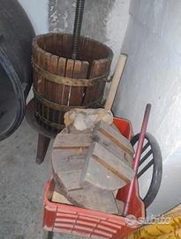 Vendo per inutilizzo attrezzatura per vino completa di tutto: pigiatrice manuale funzionante, botte da 700lt con rubinetto e torchio a mano completo di tutti gli accessori. Il tutto è da pulire e fare un po' di manutenzione dato che sono inutilizzati da qualche anno. Vendo a prezzo regalo! Per altre informazioni foto e dettagli contattatemi, solo vendita a mano, non spedisco.