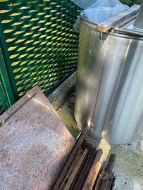 Vendo attrezzature varie per vigna e cantina Pali in corten, tini in vetroresina da 10,5 hl vasi in inox con camera d’aria valvola sempre pieno e rubinetteria (1 da 5 hl e 1 da 3hl) Macchina per macinare e torchio. Valuto offerte