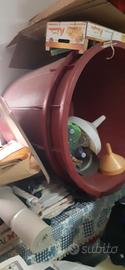 Attrezzatura completa per vino in ottime condizioni: torchio, pigiatrice, due contenitori in vetroresina da 250 litri, un contenitore con tappo ermetico e valvola da 500 litri, due mastelli per fermentazione da 300 litri complete di rubinetto.