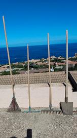 attrezzature giardinaggio: badile, rastrelli vari tipi , sega legno