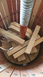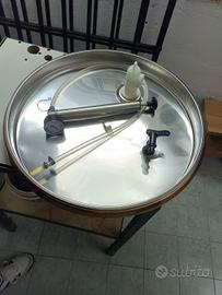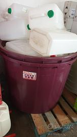 vendo in blocco la seguente attrezzatura per vendemmiare. torchio idraulico david da 70 con doghe mezzelune e pezzotti in faggio praticamente nuovi usati per una sola vendemmia. N. due tini da 5 ql. l'uno uno nuovo e l'altro usato una sola volta. N. un fusto in acciaio inox da 200 lt. con coperchio con guarnizione ad aria e piedistallo in acciaio inox in perfette condizioni N. 30 cassette rosse nuove fondo chiuso per raccolta e trasporto uva N. 10 bidoni nuovi assortiti da 20 - 25 - 30 Lt. regalo 250 bottiglie bordolesi da 75 cl. pulite pronte per essere imbottigliate . Visto il peso e l'ingombro solo ritiro sul posto a Catanzaro le foto sono delle attrezzature in vendita viste le ottime condizioni il prezzo non è trattabile