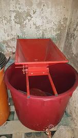 Vendo per inutilizzo, diraspatrice manuale con timone e rulli e mastello da 700 L dimensioni 115x 90 cm dotato di rubinetto praticamente nuovi tenuti benissimo.