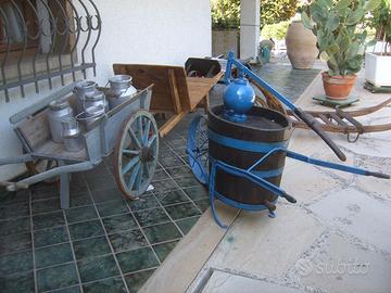 Il carrettino antico del lattaio .. le misure sono: il cassone misura Cm. 87 di Lunghezza....Cm. 64 di Largh....il Diametro delle ruote Cm. 63 Lungh. Totale compreso il timone anteriore Cm. 147....Largh. totale con asse e ruote Cm. 83, veramente un bel pezzo !!!!!