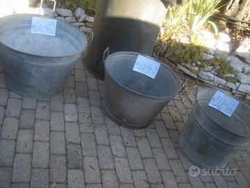 Si usavano per fare il bucato tanti anni fa, le misure sono assortite , ma quelli di grande dimensioni sono quasi introvabli, alcuni sono dotati del rubinetto in ottone per lo svuotamento.