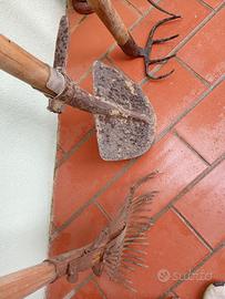 Attrezzi agricoli manuali: Zappe a 10 euro l' una. Rastrelli a 10 euro l' uno. Forche a 10 euro l' una. Falce a 15 euro. Segaccio a 10 euro.