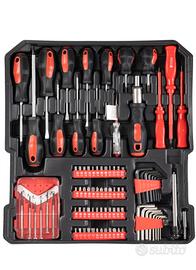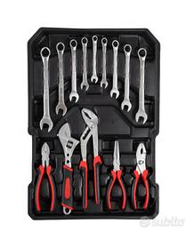 Valigetta🧳 trolley XXL completa di attrezzi perfetta per trasportare con facilità tutti gli utensili di cui hai bisogno per lavori fai da te. Organizzato su 4 ripiani mobili per accogliere tutti i vari utensili in maniera ordinata ed organizzata. Gli utensili sono realizzati in cromo vanadio per garantire alta qualità Il trolley comprende più di 399 pezzi adatti per ogni necessità ed uso lavorativo. Trolley leggero a facile da movimentare anche grazie alle rotelle rinforzate e al manico telescopico. Componenti inclusi nel trolley: Chiavi inglesi/Anelli : (6, 8, 10, 11, 12, 13, 14, 15, 17mm), Pinza a punta, Tronchese, Chiave inglese, Pinza per idraulici, Pinza combinata, Cacciaviti magnetici , Cacciaviti formato mini (Croce e Lama), Cacciaviti con manico isolante, Tester per componenti elettrici 100-250V, Set con 6 cacciaviti di precisione, Set con 12 di Bit, Croce, Lama, e Torx, Chiavi esagonali a brugola, Chiave a Cric, Manometro, Barra telescopica magnetica, Pinza a ritiro, Forbici, Nastro isolante (nero),Taglierino di metallo per tappetto, Martello da carpentiere, Pistola incollante a caldo , Livella-Righello in alluminio, Morsetti di plastica, Assortimento di materiale consumabile, Metro 5m, Fascette, Chiavi esagonali a bussola 1/4, Chiavi esagonali a bussola 1/2 , 1/4 Prolunga, 1/2 Prolunga, 1/4 Snodo a gomito, 1/2 Snodo a gomito, Prolunga flessibile, T-Snodo 1/4, T-Snodo1/2, Chiave per candela per motore da scoppio 1/2 e 16 e 21mm, Manico a cric con supporto 1/4 e 1/2.