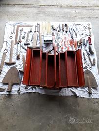 Attrezzature da lavoro giardinaggio e da meccanica. Inclusa cassetta portaattrezzi.