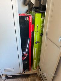Vendo per inutilizzo tris di attrezzi da giardino. Tagliaerba, decespugliatore e tagliasiepi. Tutti perfettamente funzionanti e in buone condizioni e completi di accessori. Pronti all’uso. Prezzo trattabile. Vendibili anche separatamente, ma sarebbe meglio prendere tutto il blocco.