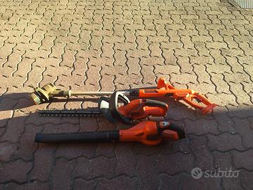 vendo in lotto un set di attrezzi da giardinaggio della marca black&decker. tagliaerbe taglia bordi -decespugliatore soffione taglia siepi oltre a 6 batterie ricaricabili e 2 caricatori tenuti in buono stato. in caso di vendita. consegna a mano