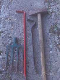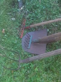 diversi attrezzi da giardinaggio o orto picconi, pala, forca, pala da neve rastrelli, forbice, martelli ascietta, manarin, roncoletta Piedi di porco, mazza tutto a basso prezzo 10 15e Vanga lunga 44cm 40e