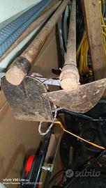 vendo attrezzi lavoro come da foto nonché altri come rastrelli , vanga, pala, tridente per fine lavoro a 10 euro al pezzo, tranne pompa e svettatoio costo di 25. e 40.