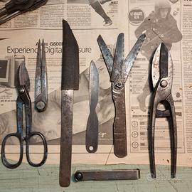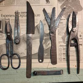 Seghe manuali, strumenti comuni per il taglio di vari materiali. Seghetto ad arco (sinistra): Un seghetto tipo pesante, probabilmente un modello Beta 1727. È utilizzato principalmente per tagliare metalli o plastica, con una lama bimetallica. Mini seghetto ad arco (centro): Una versione più piccola e portatile, spesso usata per lavori di precisione o in spazi ristretti. Sega a mano tradizionale (destra): Una sega con un'impugnatura in plastica, tipicamente utilizzata per tagliare il legno. Assortimento di forbici e cesoie, che sono strumenti manuali utilizzati per il taglio di vari materiali. Antica sega da falegname a telaio con arco in legno e lama in ferro. Utilizzata per il taglio del legno, spesso a due mani. Il telaio in legno è un modello antico o una riproduzione artigianale. Le due più grandi a sinistra sono cesoie per lamiera, adatte al taglio di metalli. Le quattro più piccole a destra sono forbici, probabilmente per sartoria o cucito, utilizzate per tagliare tessuti o fili. Sono tutte in metallo e sembrano essere di tipo vintage o antico. Le forbici sono composte da due lame incrociate unite da un perno centrale. È un oggetto da collezione o arredo rustico. Più fai-da-te taglio manuale piccoli. Zona ritiro Servola Trieste nessuna spedizione disponibile solo ritiro Trieste.