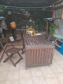 Causa età e trasferimento in altra casa, VENDO, a prezzi veramente molto bassi: 1) una casetta da giardino di ottimo legno ca mt 2x2 da riattare un pò, completa di banco lavoro (80,00 € il tutto); 2) un aspira foglie funzionante (30,00 €); 3) un gazebo di legno mt 3x3 discretamente nuovo e completo di accessori vari (100,00 €); 4) un tavolo di legno 6-8 posti da giardino con quattro sedie (80,00 € il tutto); 5) due bancali di legno (20 € tuti e due); cassette per piante e vasi da appendere con pianta (14 € ogni 5). Inoltre REGALO un paio di tavolini di plastica da esterno con ombrellone. Ovviamente ci sono tante altre cose che vedrete e ne potremo parlare...anche un bel barbecue in muratura e pesante!! Naturalmente dovrete venire a smontare il tutto, ma mio nipote, bravissimo, pratico e veloce, ha detto che vi aiuterà. E' necessario, per la casetta e il gazebo, un furgoncino che si può parcheggiare molto vicino al portone del caseggiato. Allego foto e disponibile per tutte le spiegazioni.