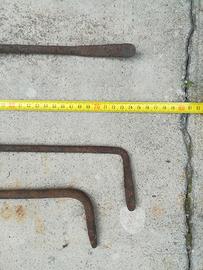 Vecchi attrezzi utensili da camino in ferro. Vendo così come sono con la loro patina di vissuto. Possibilità di ritiro a mano su Bologna zona ospedale Sant’Orsola, la spedizione è problematica per via della lunghezza.