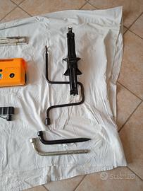 Attrezzi vari un compressore auto 12 volt Peugeot N2 chiavi a croce vari seri chiavi un cric per auto n27 elettrodi per saldatriceun tappeto per bagagliaio auto 1 borsa porta attrezzi nera come da foto pubblicate