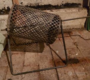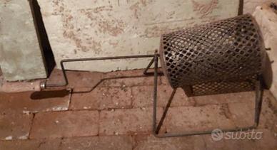 Comodo attrezzo in ferro per la preparazione di caldarroste sul fuoco.