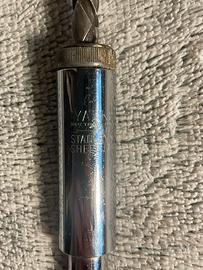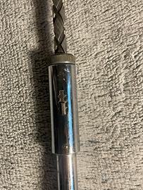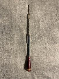 Attrezzo vintage da lavoro, probabilmente un vecchio cacciavite o alesatore manuale con asta a spirale. Manico in legno verniciato, parte metallica completa e funzionante. Ideale per collezionisti di utensili d’epoca, arredo officina o scenografia. Oggetto originale, non restaurato.