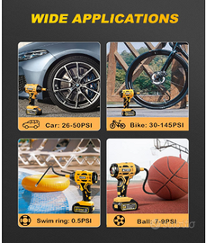 Multifunzionale per Vari Gonfiaggi: Oltre ai pneumatici delle auto, questo compressore è perfetto per moto, bici, SUV e MPV. Include anche accessori come 4 adattatori per gonfiare palloni, giocattoli gonfiabili e altro ancora, rendendolo versatile per ogni esigenza.