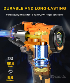 Specifiche Tecniche di Qualità: Realizzato con materiali resistenti come Nylon + fibra, TPU e ABS ignifugo, questo compressore misura 16.3x7.8x26.8 cm e copre un'ampia gamma di pressioni da 3 a 180 PSI. Include una pratica borsa per un trasporto comodo e ordinato.