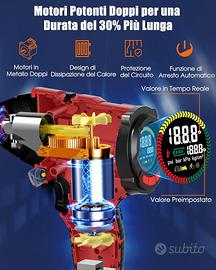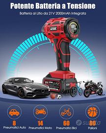 Gonfiatore Senza Fili 180 PSI con Due Fonti di Alimentazione, Batteria 21V / 12V DC, Manometro Digitale, Spegnimento Automatico, Perfetto per Viaggi (Rosso)