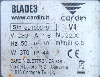 Vendo a causa di cambio tipologia cancello, da anta battente a scorrevole. Il KIT CARDIN comprende Centralina Cardin T600 completa di nr.1 motore Cardin Blade3 con encoder e nr. 4 fotocellule VEDO180 (TX) (nr. 2 fotocellule da esterno e nr.2 fotocellule da incasso), è incluso anche un lampeggiante modello ICON. Il KIT è stato installato nuovo nel Marzo 2023. Il prezzo è trattabile.
