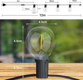 12M 30+3 G45 Luci da Esterno Giardino LED IP65 Impermeabile, Lucine da Esterno Giardino Decorative per Terrazzo Gazebo Festa Matrimonio, Bianco Caldo