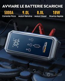 Avviatore Emergenza per Auto con Compressore 150PSI 5000A 21800mAh, YaberAuto Booster Avviamento Auto/Moto per 9.0L Gas/8.0L Diesel, 12V Starter Batteria con Ricarica Rapida 18W,Uscita DC 160W,Torcia