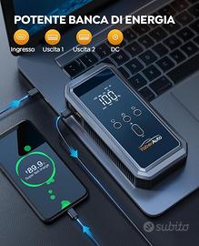 【Bancia di Potente 21800mAh e Torcia LED】È un Bancia di Potente da 21800mAh con 2 Uscitas USB Ricarica Rapida per ricaricare telefoni, tablet, fotocamere, ecc. (USB1: 5V/2.4A, 9V/2A, 12V/1.5A). L'Uscita DC fornisce 12V~16,8V 10A, in grado di caricare un dispositivo fino a 160W. Sono disponibili 3 modalità di illuminazione con luce LED integrata (Torcia/SOS/Strobo). YA70 avviatore batteria auto non è solo una torcia, ma anche un alimentatore.