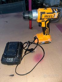 Trapano avvitatore completo di batteria e caricabatteria. Due velocità del mandrino