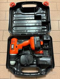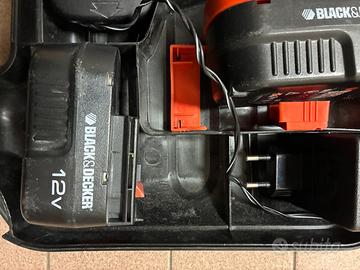 Avvitatore a batteria a due velocità Black & Decker 12 Volt , valigetta con corpo macchina, 2. batterie, caricabatterie . Mandrino autoserrante ( si stringe e si allenta con le mani ) , usato pochissimo . Perfetto per fai da te, bricolage, foratura legno metallo plastica , lavori in genere