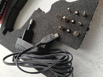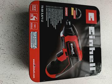 Avvitatore a batteria Einhell TE-SD 3,6V Ioni di Litio. Avvita/svita. Velocità 180 giri/min. Dimensioni 17L x 4,5l x 11,2H cm Sempre pronta all'uso grazie alla tecnologia agli ioni di litio senza autoscarica Cambiamento rapido e intuitivo delle punte grazie al portapunte magnetico Lavoro ottimale in luoghi bui grazie all'illuminazione a LED Usato tre volte al massimo, ottimo stato, completo di scatola , istruzioni e caricabatteria. Segnalo piccoli difetti della scatola.