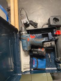 Vendo bellissimo, compatto e leggero avvitatore Bosch Professional GSR 12V con valigetta originale, 2 batterie da 12V 2Ah, caricabatteria e inserti originali. Il tutto con pochi mesi di vita, usato per lavoretti dibricolage in massimo 4/5 occasioni (mai lavoro gravosi), tenuto maniacalmente sempre pulito dopo ogni utilizzo, conservato in luogo asciutto. Nessun segno di usura. Perfetto, leggero e potente. Ha anche percussione.