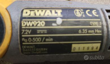 Avvitatore Dewalt Dw920 avvitatore pieghevole completo di sua cassetta carica batteria Originale multi marche e modelli batterie batteria esaurita da rigenerare ritiro su Grosseto o spedizione.