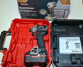 Avvitatore a percussione Parkside Performance 20v con batteria da 4ah nuova,mai usato,con valigetta, 226Nm dichiarati ma la sua vera potenza ne è molta di più! Il caricatore viene venduto separato ,modello ricarica rapida con raffreddamento da 4,5Ah ,a 15 euro in più Tutto nuovo!!