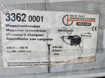 Avvitatore a nastro HOLZ HER modello 3262 con avvolgibile, ideale per carton gesso casse di imballaggio legno, ecc. ecc., potenza 230v 750w, n.gi4i/minuto da 100 a 4000 per viti da 3,5x30 a 4,0x51, perfetta. Possibilità di spedizione